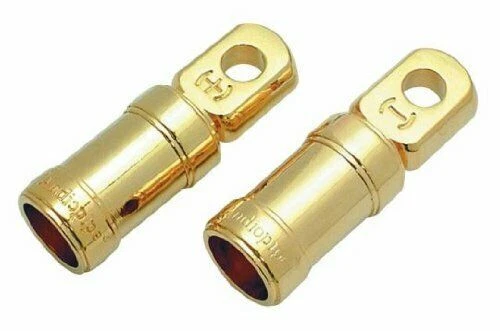 Par de terminales de anillo de cobre estilo prensado de 1/4 de pulgada con termorretráctil calibre 0